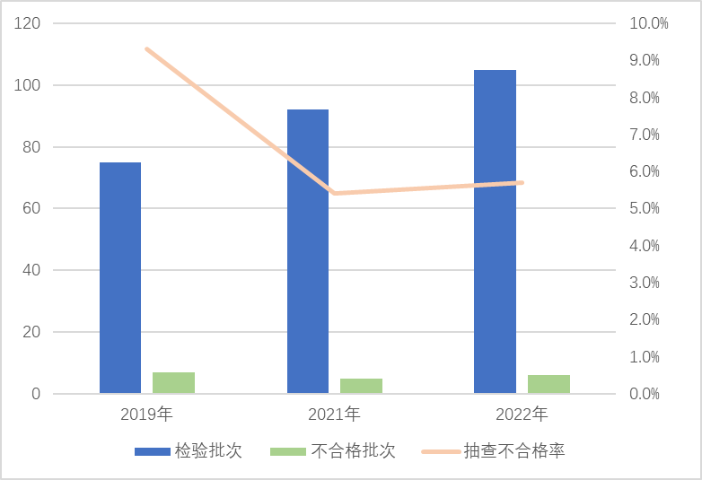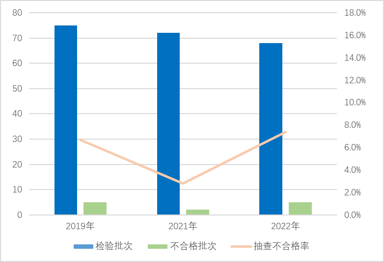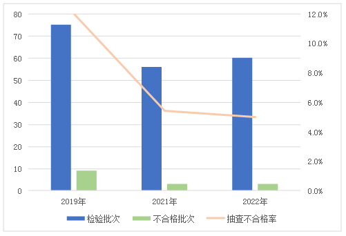 圖5 危險(xiǎn)化學(xué)品包裝物產(chǎn)品近3年國(guó)家監(jiān)督抽查情況