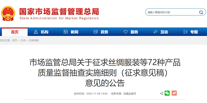 為提升工業(yè)產(chǎn)品質(zhì)量監(jiān)督抽查工作的科學性、規(guī)范性,市場監(jiān)管總局依照《產(chǎn)品質(zhì)量監(jiān)督抽查管理暫行辦法》,結(jié)合最新標準發(fā)布實施情況,擬制修訂絲綢服裝等72種產(chǎn)品質(zhì)量監(jiān)督抽查實施細則(見附件1),現(xiàn)向社會公開征求意見。