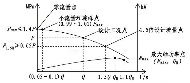 2. 消防水泵的流量揚(yáng)程性能曲線應(yīng)為無駝峰、無拐點(diǎn)的光滑曲線, 當(dāng)消防水泵出流量為設(shè)計(jì)流量的5% - 10% 時(shí), 其出口壓力與零流量時(shí)壓力的增加值不應(yīng)超過消防水泵零流量時(shí)出口壓力值的1%;