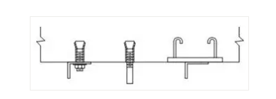 (2)支吊架的固定采用以下幾種方法:①膨脹螺栓法。本方法適用于規(guī)格較小的風(fēng)管支吊架的固定。本工程支吊架固定大多數(shù)采用此法,通過(guò)在樓板、梁柱上打膨脹螺栓固定支吊架。②焊接法。本方法適用于風(fēng)管規(guī)格大,使用膨脹螺栓固定不能滿足強(qiáng)度時(shí),采用預(yù)埋件焊接固定支吊架。支架固定形式見下圖。