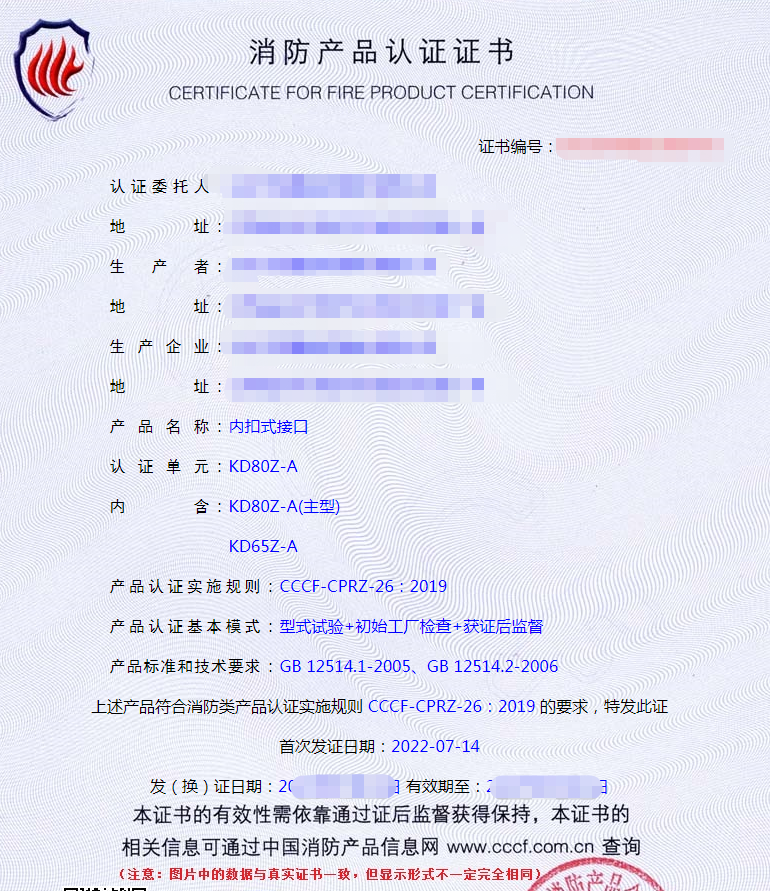 消防接口認(rèn)證檢驗(yàn)要求